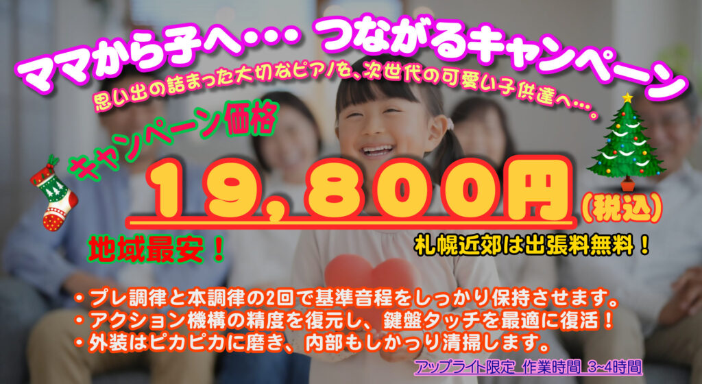 ●調律を何年もしていなくても、19,800(税込)でピアノを「シッカリ」と復活させます。